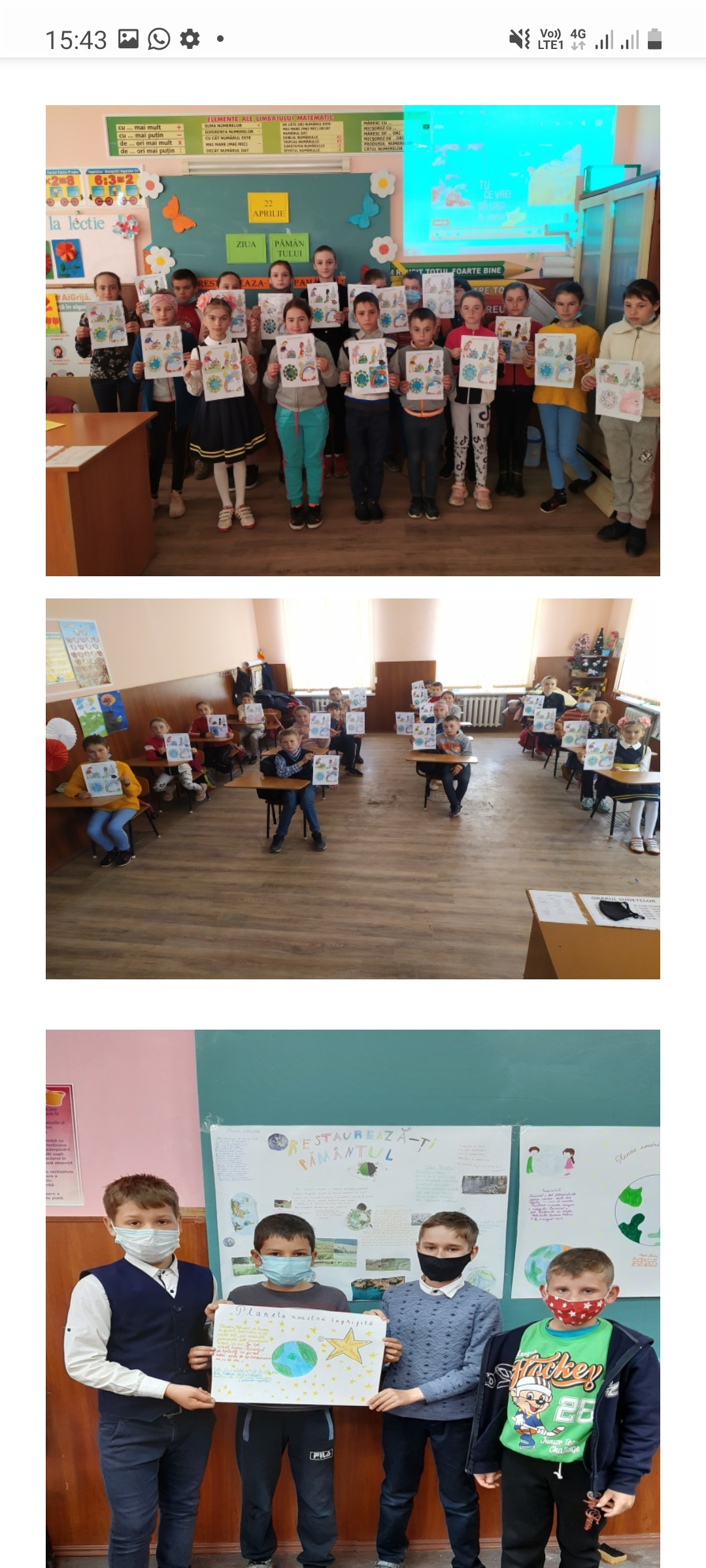 - Ore ecologice: ,,Cu drag de tine Terra”, “ Pământul este ceea ce avem toți în comun,”, „Restaurează-ți Pământul” , „ Trăiesc pe Pământ-sunt pământean”.